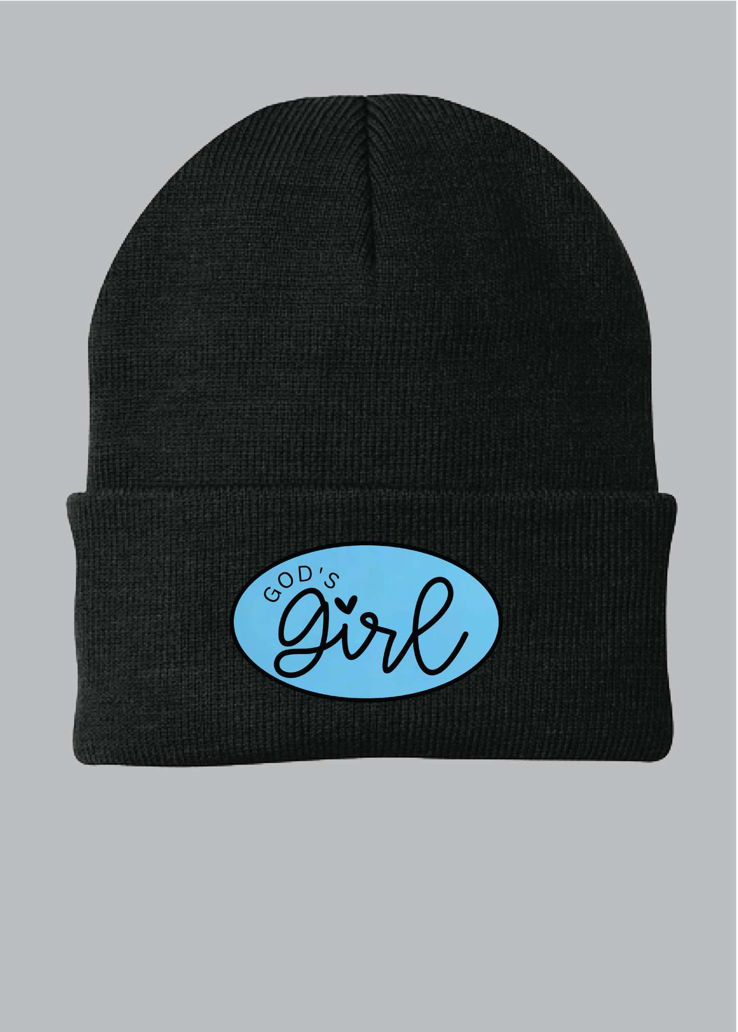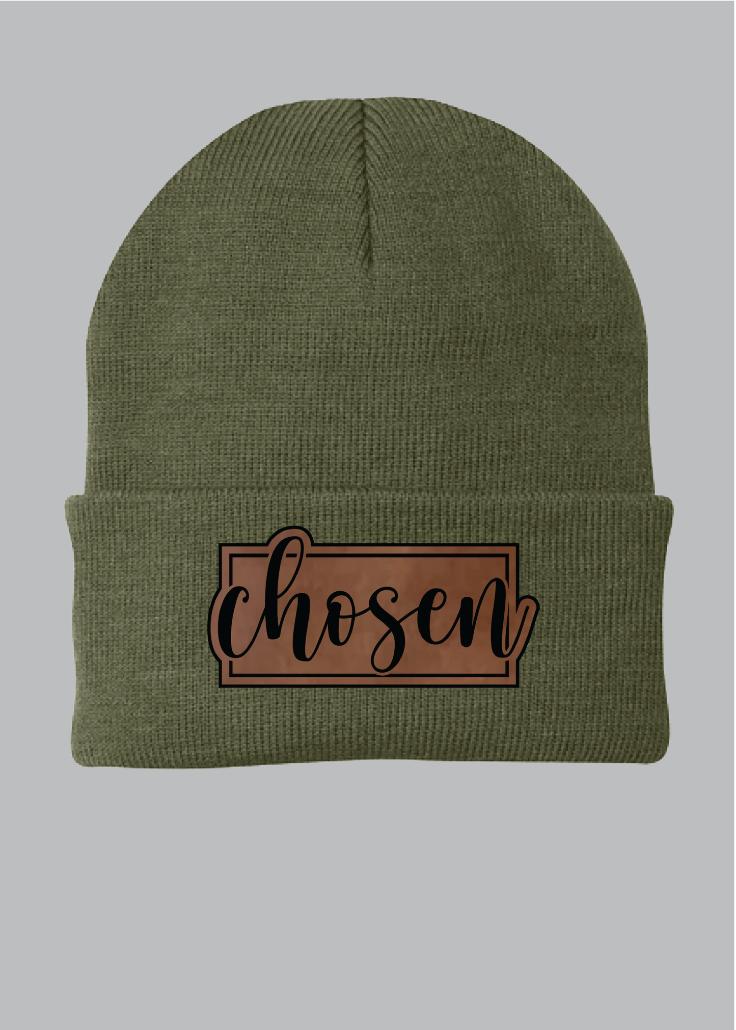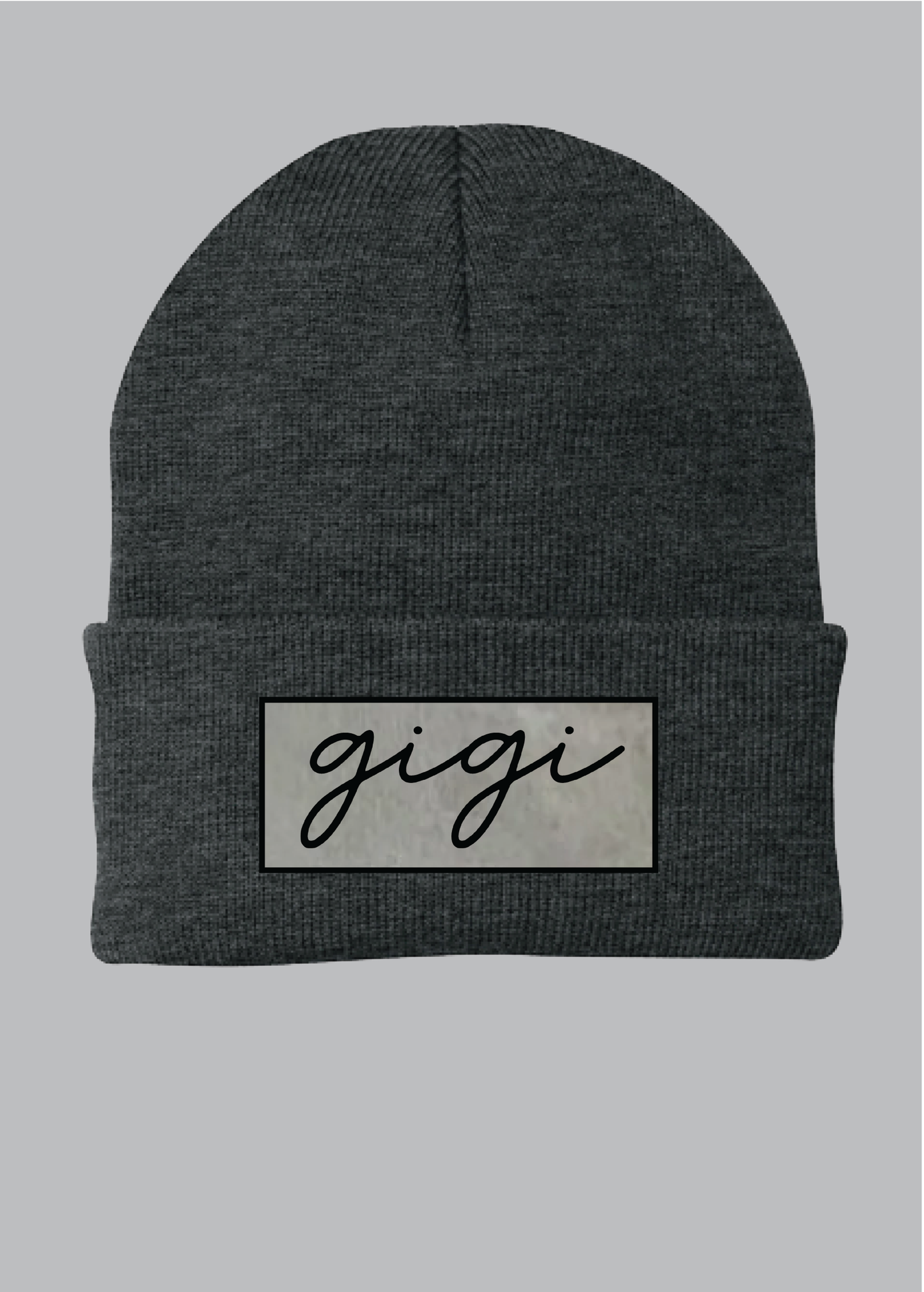 LEFT SIDE RECTANGLE NICKNAME Leather Patch Beanie