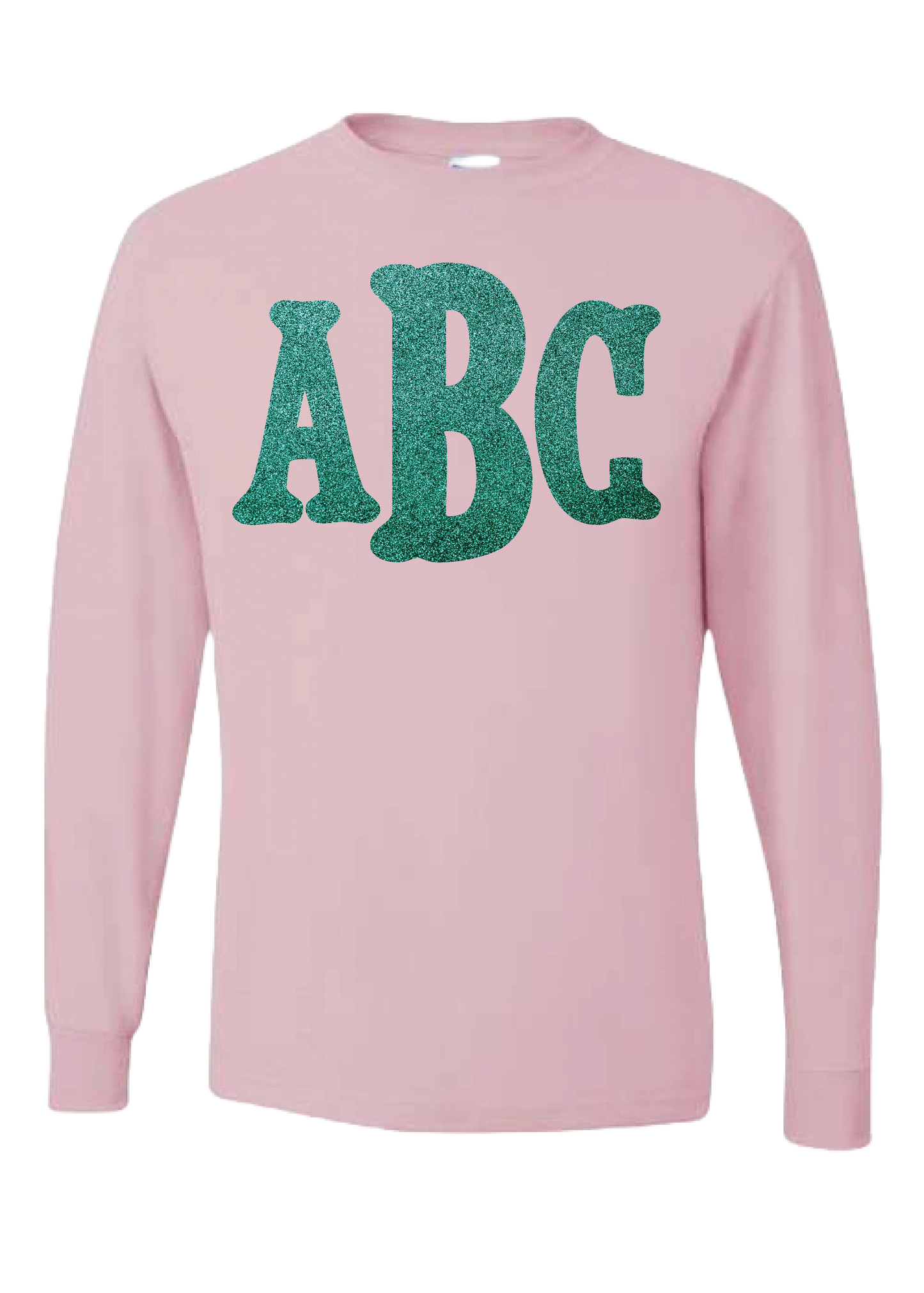 ADULT GLITTER APPLIQUE MONOGRAM LONG SLEEVE Tee