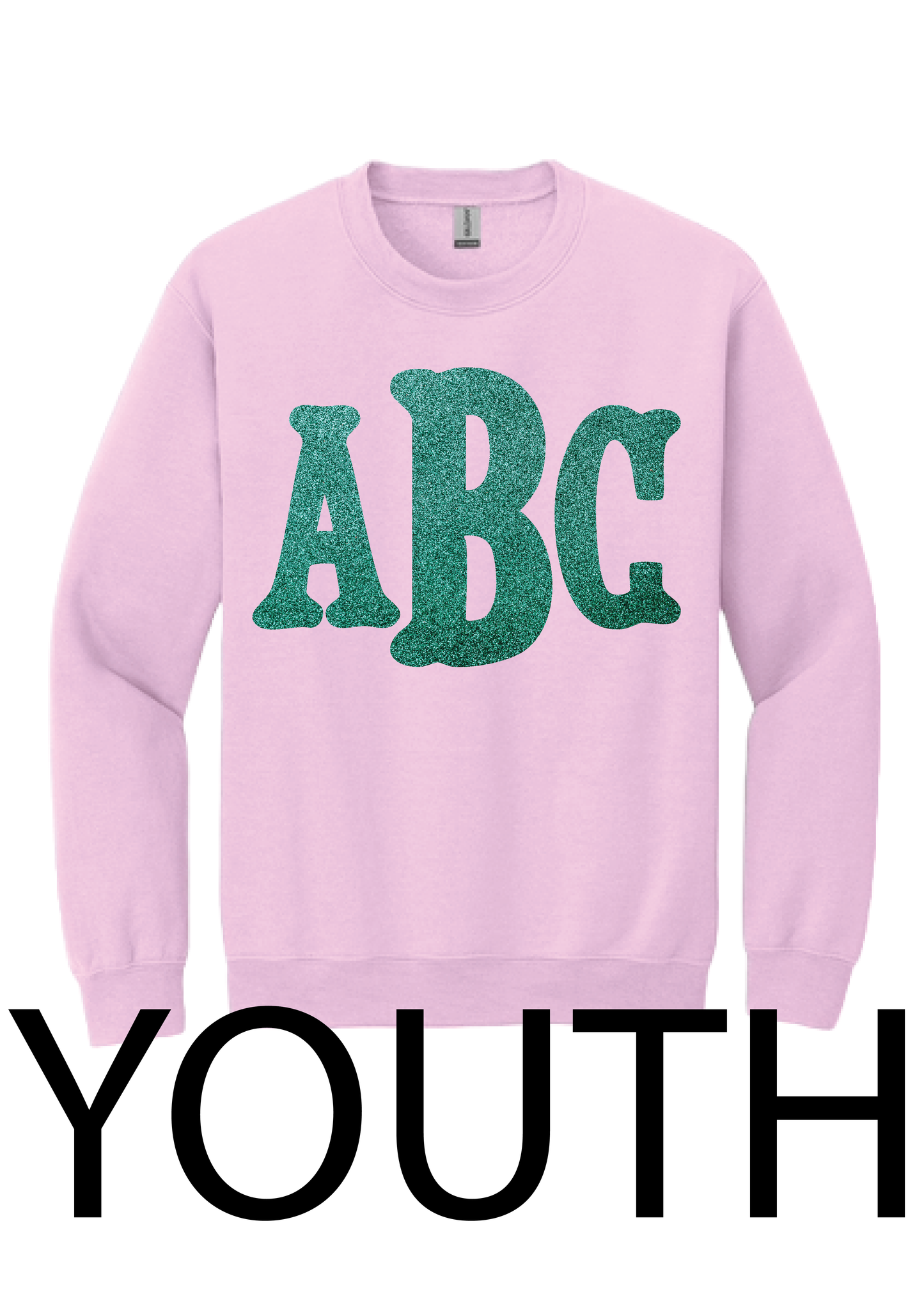 ADULT GLITTER APPLIQUE MONOGRAM CREWNECK Sweatshirt