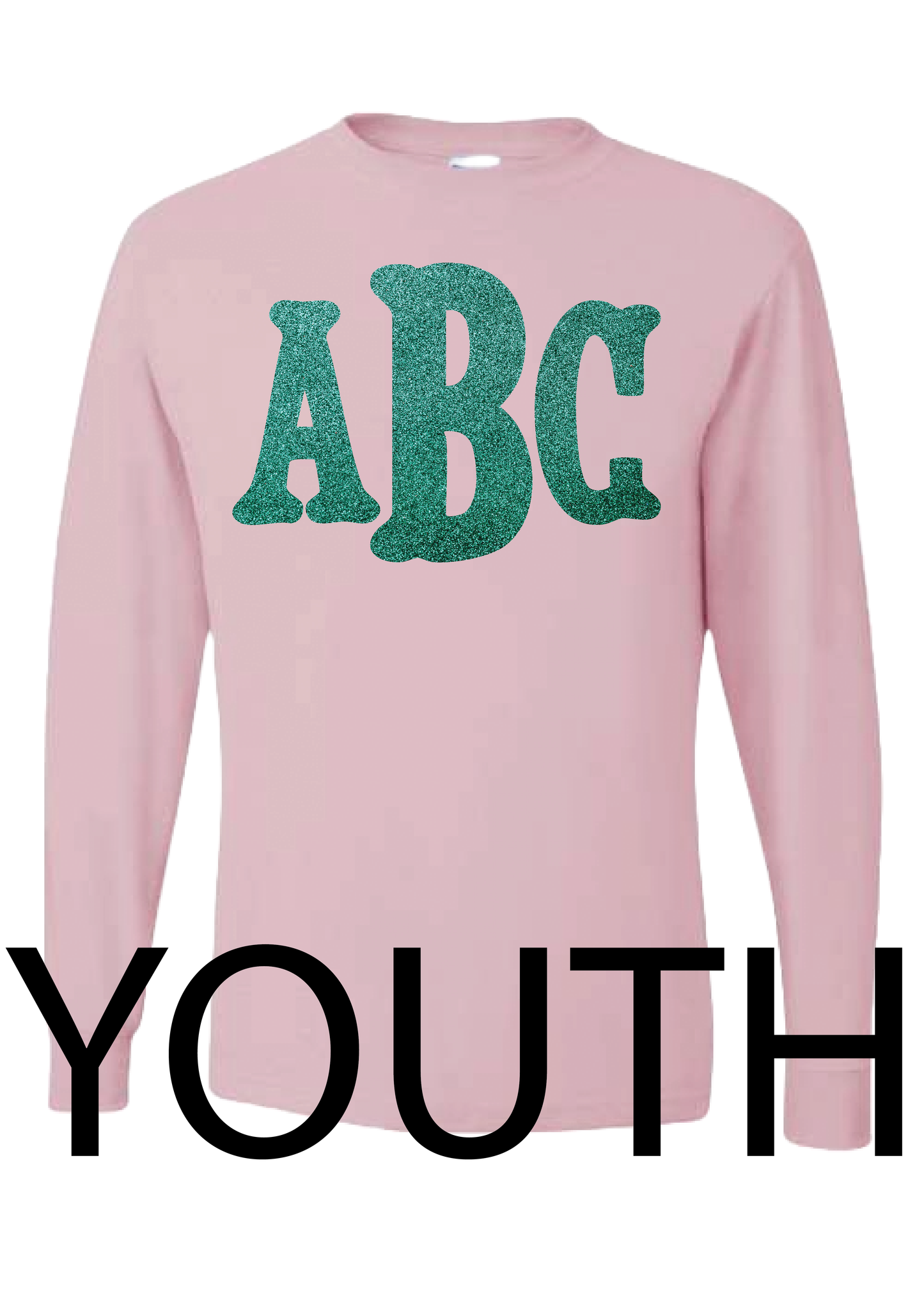 YOUTH GLITTER APPLIQUE MONOGRAM LONG SLEEVE Tee