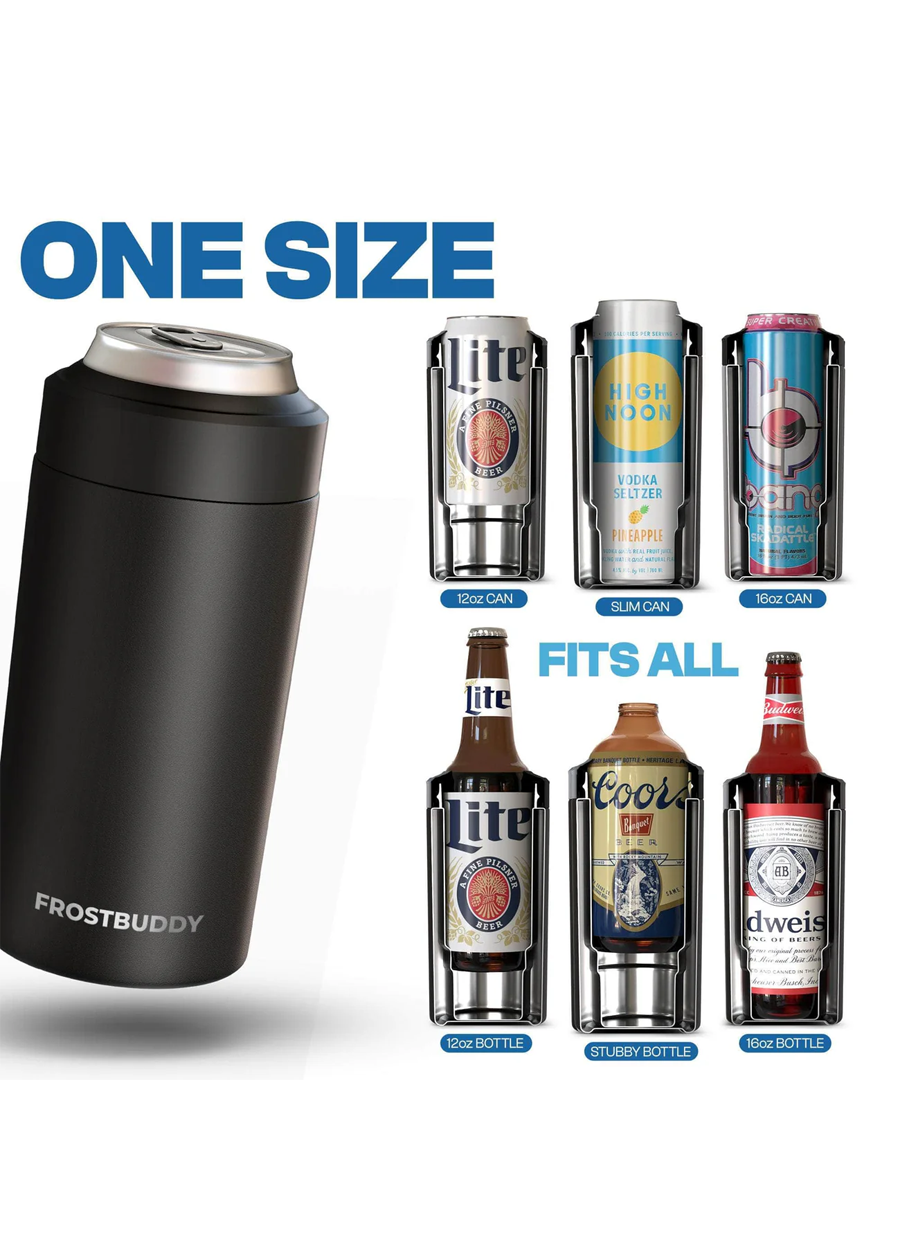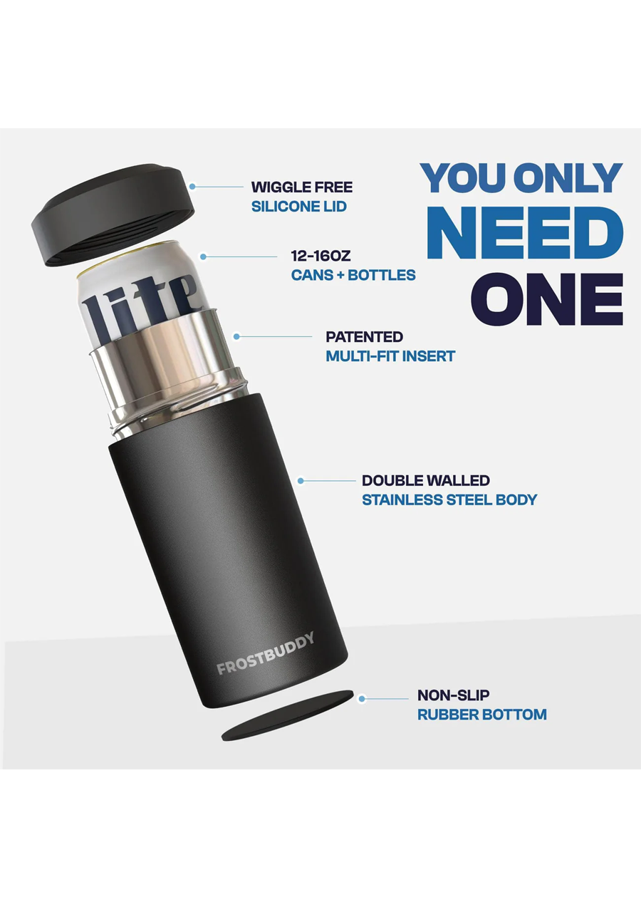 Say goodbye to your slim can or 12oz can cooler. Frost Buddy fits every 12oz can, slim can, 12oz bottle, & 16oz can / bottle all in one. It’s the only can cooler you need!