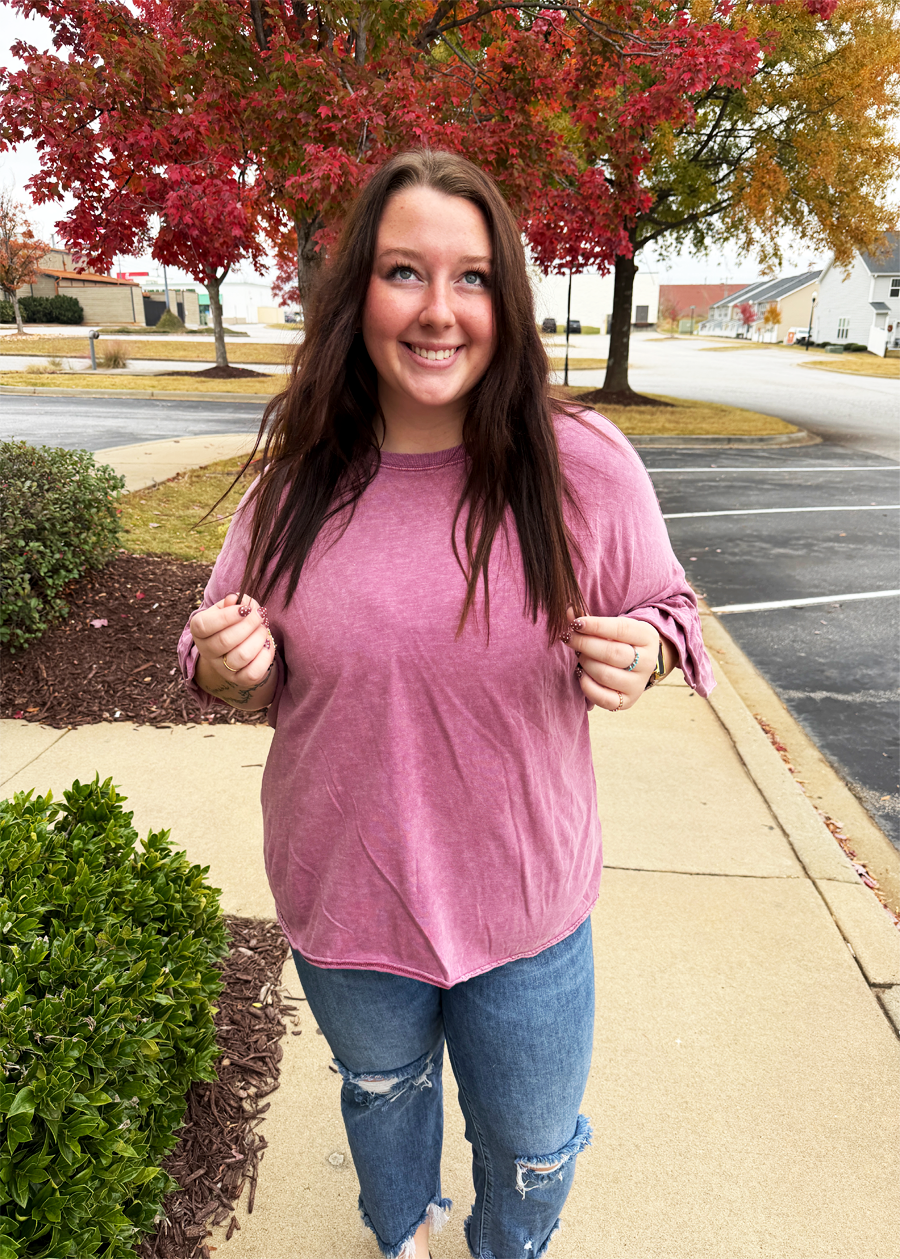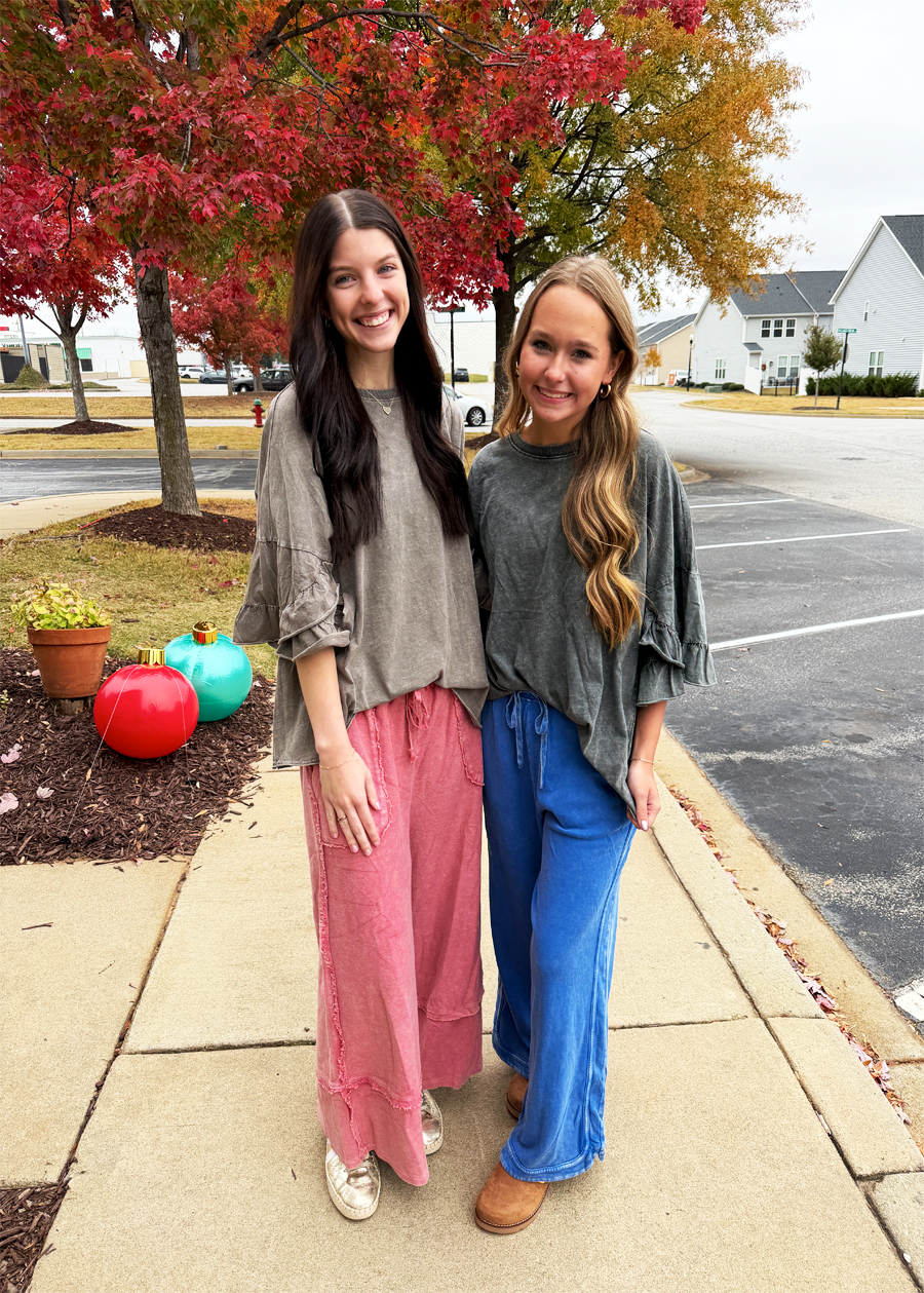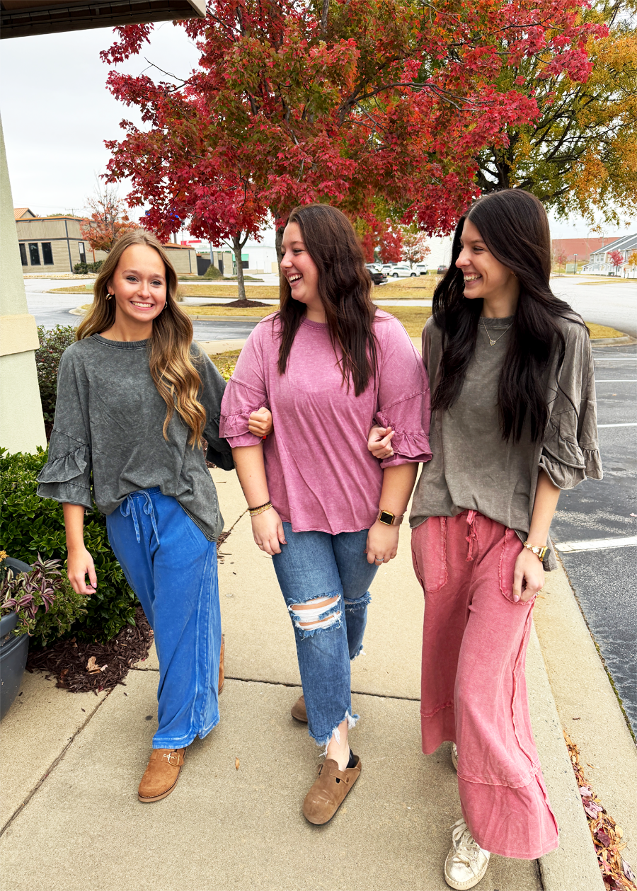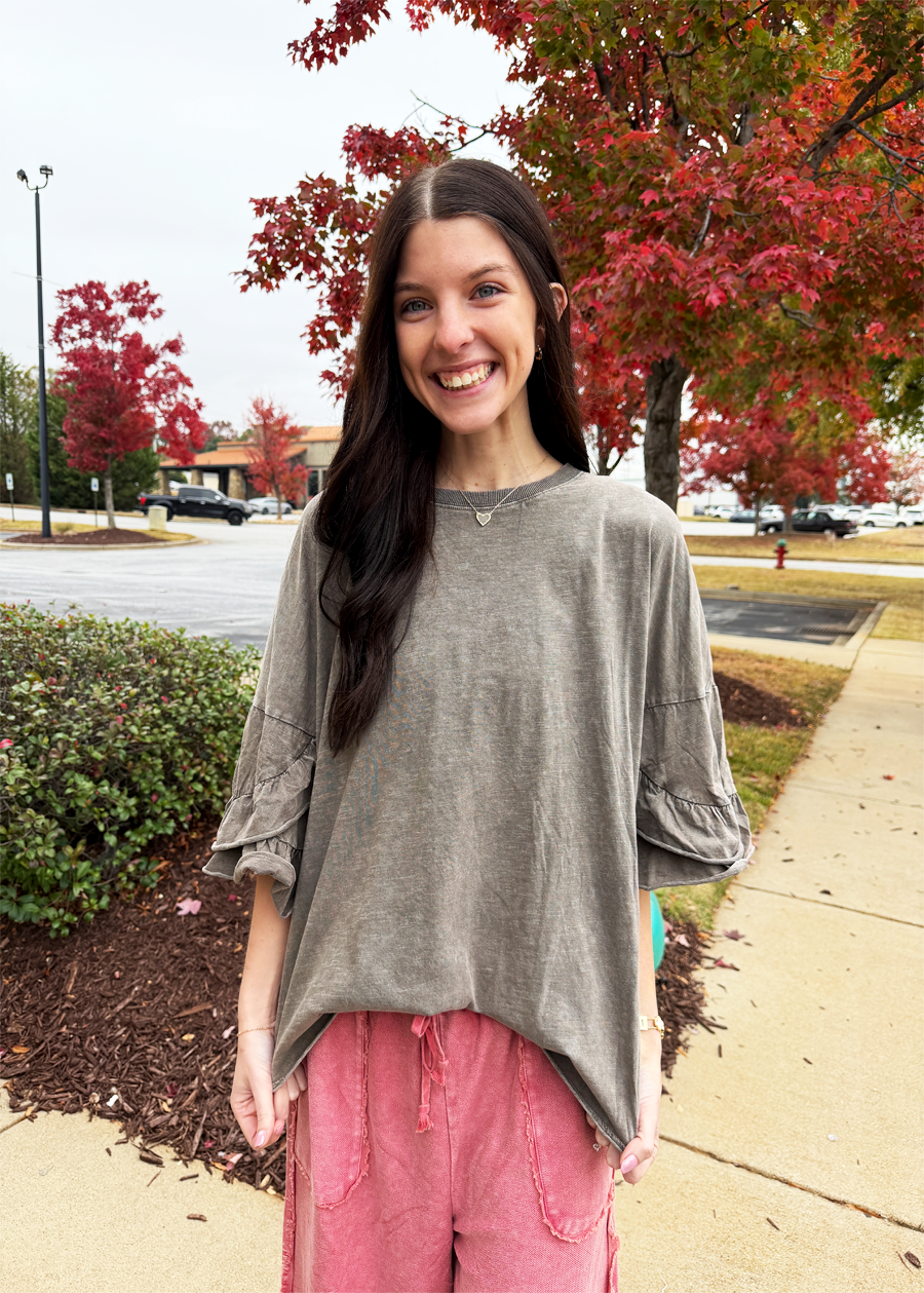 Talk about a perfect blouse! Soft, oversized, AND cute ruffle detail on the arms? PERFECTION! The Madeline Top is 100% cotton!